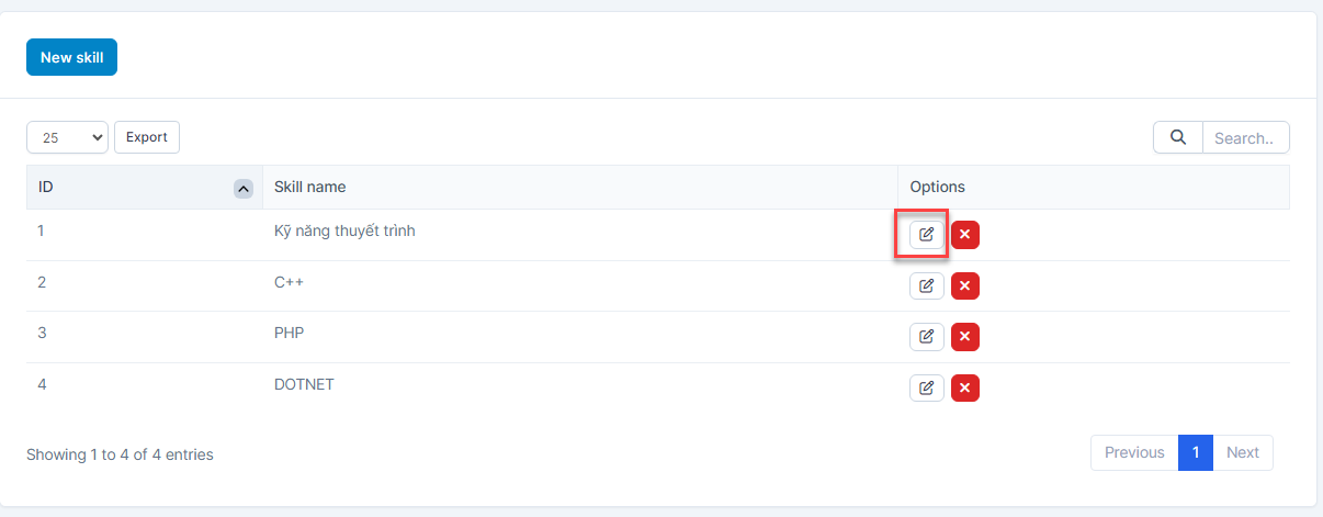 - Step 2. Select the Skills menu -> Select the skill need to be edited and click Edit button